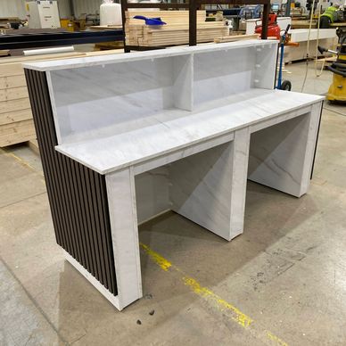 "WE’RE VERY PLEASED WITH OUR CUSTOM RECEPTION DESK AND BOOKCASE. IT GIVES US MUCH MORE ROOM THAN OUR PREVIOUS DESK" ⭐⭐⭐⭐⭐